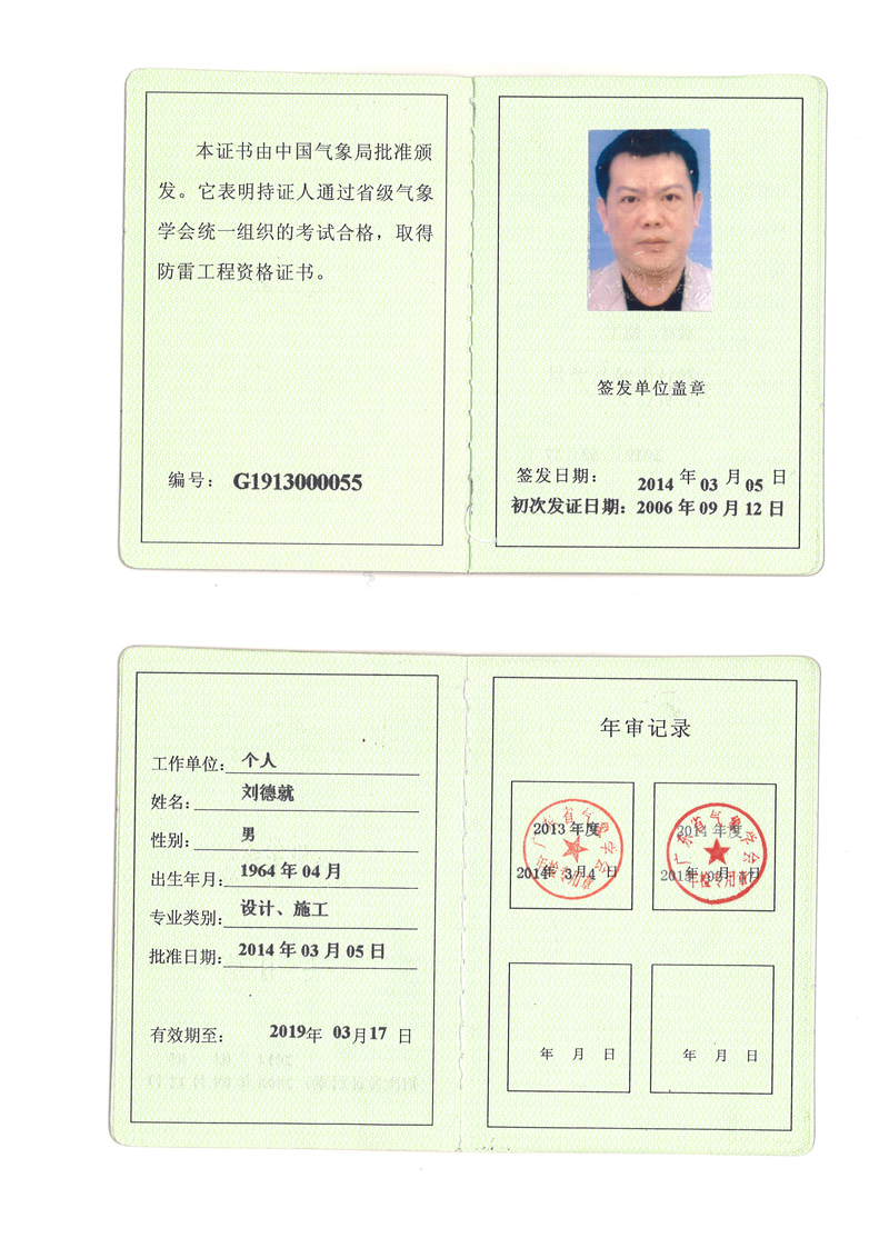 防雷工程资格证书