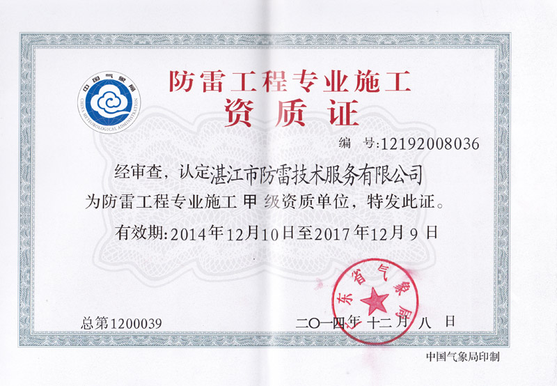 防雷工程专业施工资质证